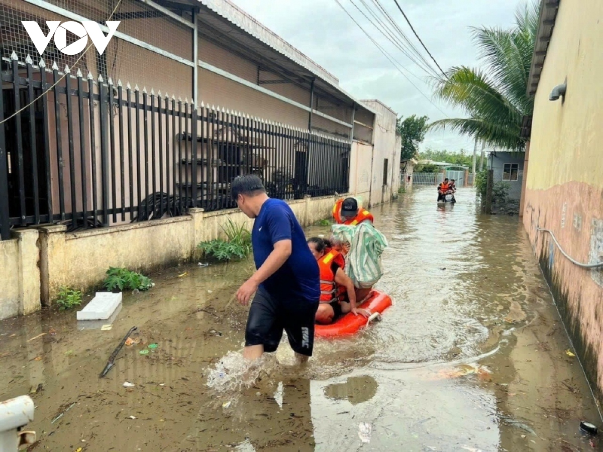 VOV.VN - Ảnh hưởng hoàn lưu của bão số 1, những ngày qua trên địa bàn thành phố Phú Quốc liên tục có mưa lớn kéo dài, gây ngập cục bộ ở nhiều nơi. Ban Chỉ huy quân sự thành phố Phú Quốc đã nhanh chóng điều động gần 100 cán bộ, chiến sĩ phối hợp với lực lượng công an, biên phòng và chính quyền địa phương ứng cứu, sơ tán người già và trẻ nhỏ đến nơi an toàn