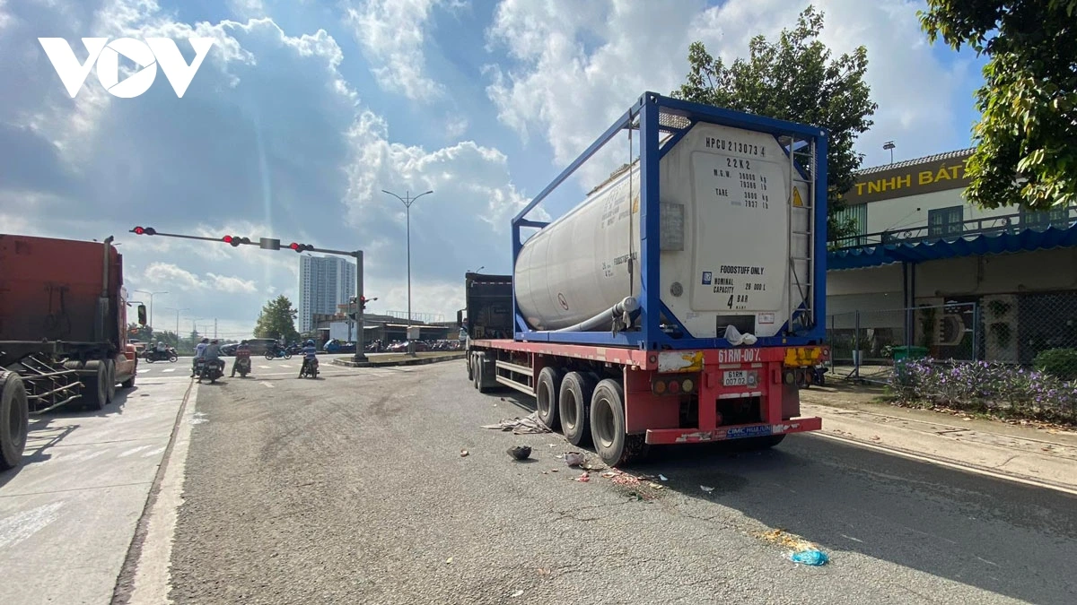 Vào thời điểm trên, xe ô tô đầu kéo mang biển kiểm soát 61H-145.30, do một nam tài xế điều khiển, đang lưu thông trên đường Mỹ Phước - Tân Vạn, theo hướng từ An Phú đi Tân Vạn.