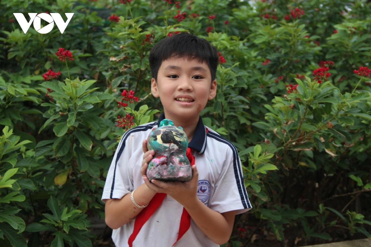 Em Nguyễn Tuấn Tú, học sinh Trường tiểu học Nguyễn Thái Học cho biết, em rất thích tô tượng, tham gia hoạt động này em vừa đóng góp một phần quà nhỏ đến các bạn học sinh vùng lũ vừa được tô tượng.
