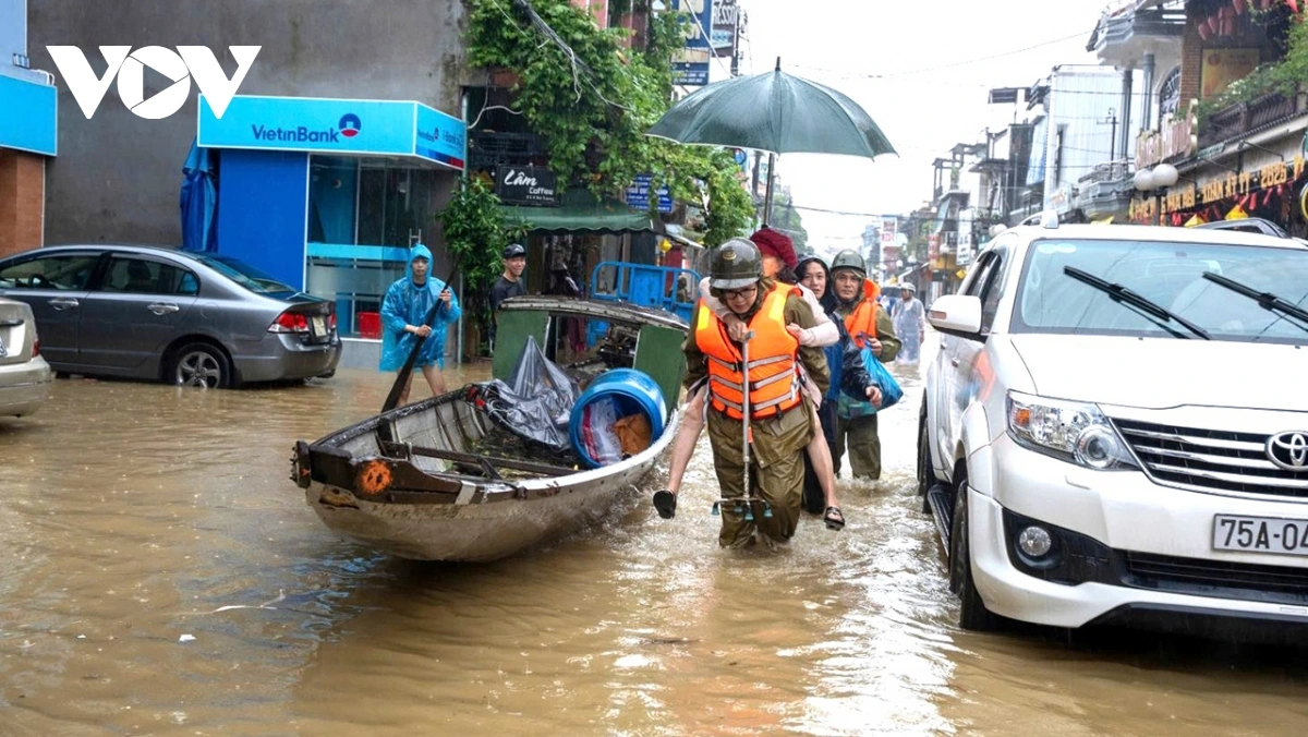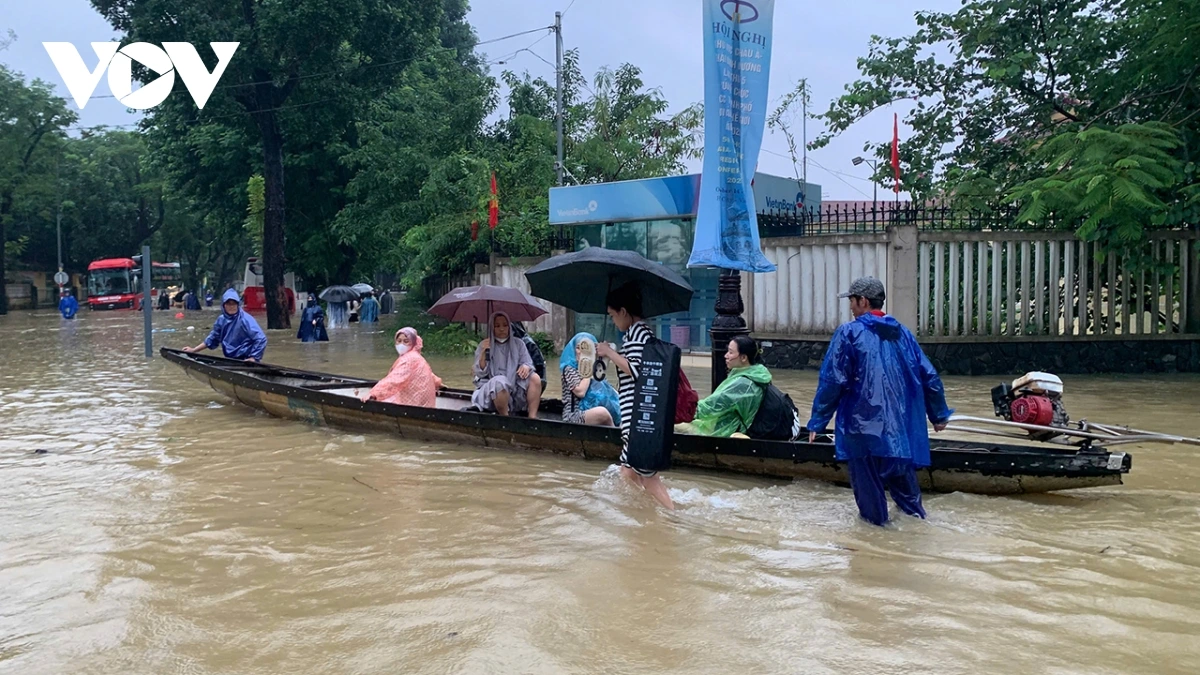 Hiện mực nước ở sông Bồ, sông Hương và các sông trên địa bàn thành phố đang dâng cao, tiếp tục gây ngập trên diện rộng. Lực lượng quân đội, công an được huy động khoảng 6.000 người tiếp tục hỗ trợ di dân ở những địa phương thấp trũng, ngập sâu.