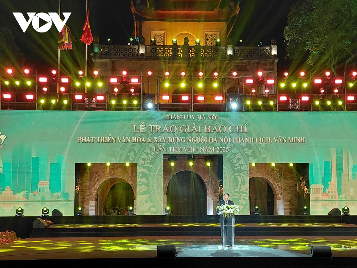 Từ khóa: Hà Nội, giải báo chí, văn hóa Hà Nội, người Hà Nội thanh lịch văn minh, Thành ủy Hà Nội, Hoàng thành Thăng Long, phát triển văn hóa, báo chí Thủ đô, giải thưởng báo chí 2025,VOV nhận giải báo chí Hà Nội,người Hà Nội