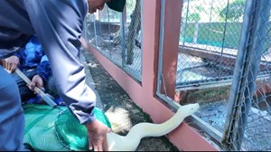 Trại rắn Đồng Tâm tiếp nhận con trăn bạch tạng do người dân giao nộp
