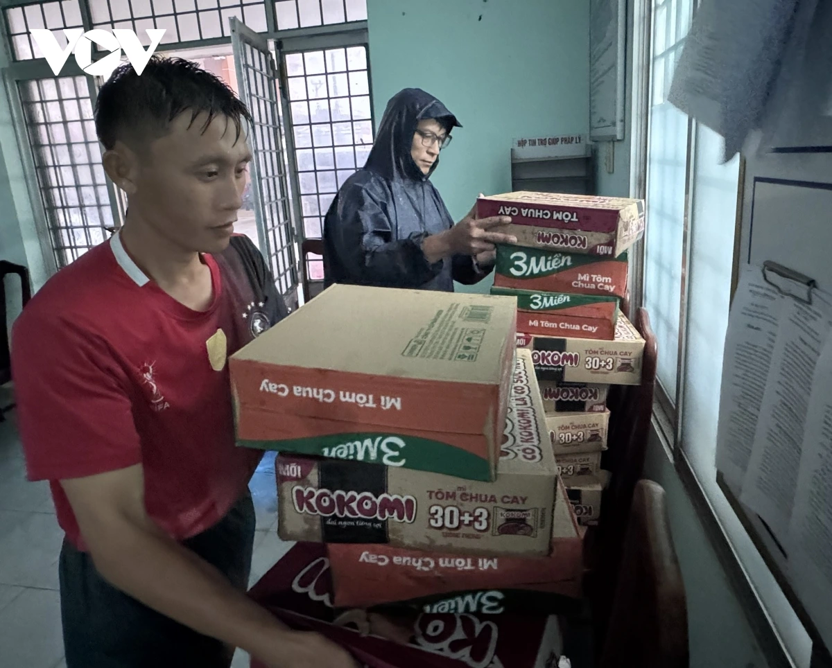 Tại tất cả các điểm tránh trú bão ở các xã, phường phía đông tỉnh Đắk Lắk, đều được bố trí nước uống đóng chai miễn phí và mì gói phục vụ bà con