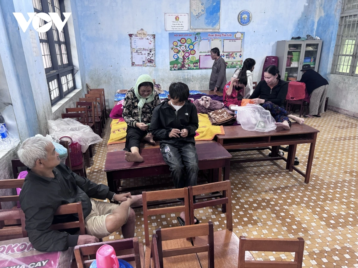 Một điểm tránh trú bão tại trường Tiểu học Nguyễn Thị Loan, thôn Gia Sơn, xã Tuy An Nam, tỉnh Đắk Lắk. Tại đây có khoảng 300 người dân lưu trú tạm thời khi bão số 13 đổ bộ