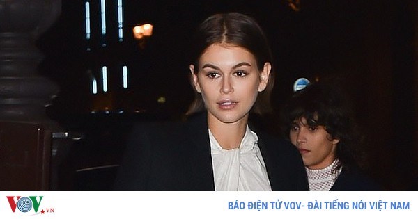 VOVVN - VOV.VN - Người mẫu Kaia Gerber trang điểm tông màu trầm, điệu đà dự tiệc ở Pháp sau khi chia tay bạn trai Pete Davidson.