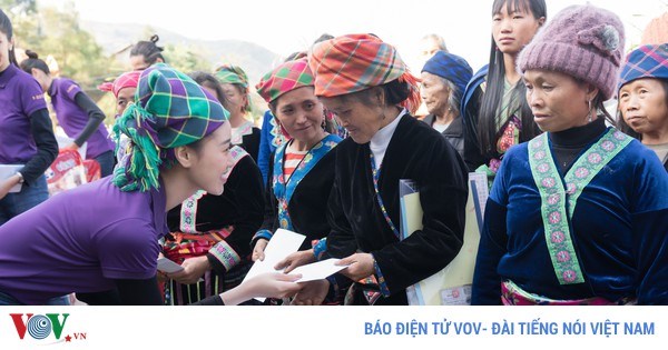 VOVVN - VOV.VN -Hoa hậu Khánh Vân, Á hậu Kim Duyên cùng dàn người đẹp ghé thăm các em học sinh trường mầm non bản Căn Câu, Lai Châu.