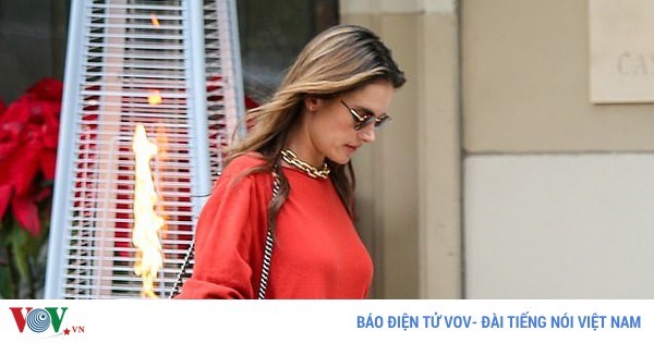 VOVVN - VOV.VN - Siêu mẫu Alessandra Ambrosio trang điểm tươi trẻ, diện đầm xẻ cao đỏ rực đi ăn tối cùng bạn trai người Ý ở Santa Monica.