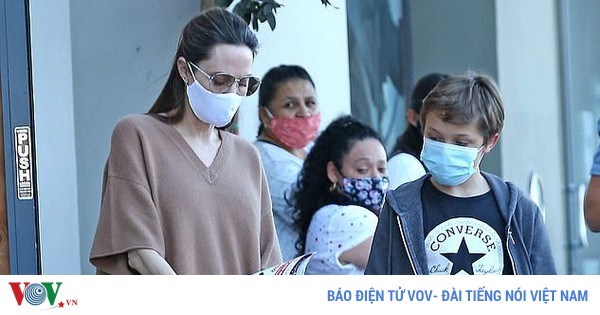 VOVVN - VOV.VN - Angelina Jolie mặc áo len dáng rộng và chân váy trắng, lộ vóc dáng gầy gò đi mua sắm cùng con trai cưng ở Los Angeles vừa qua.