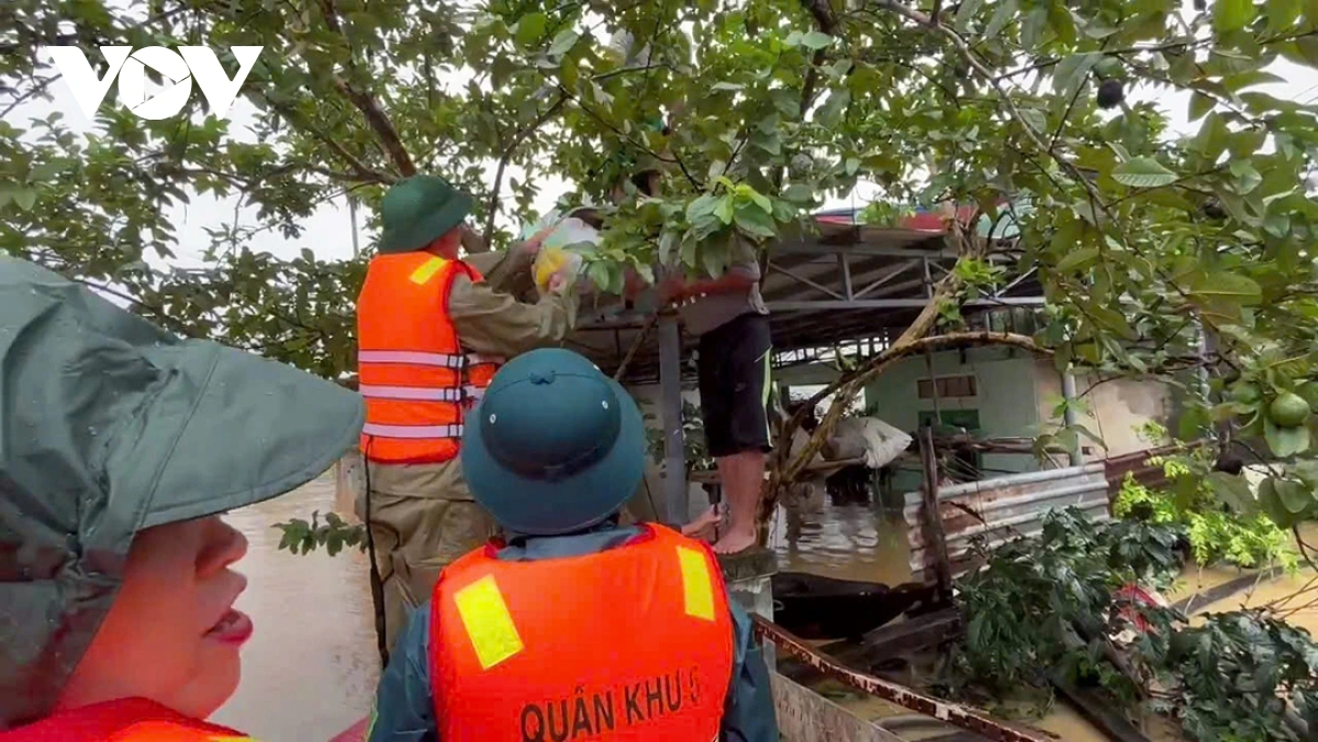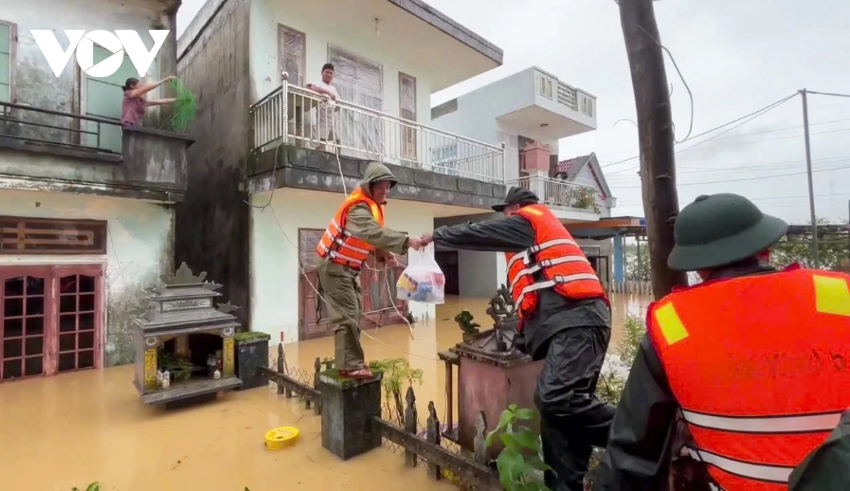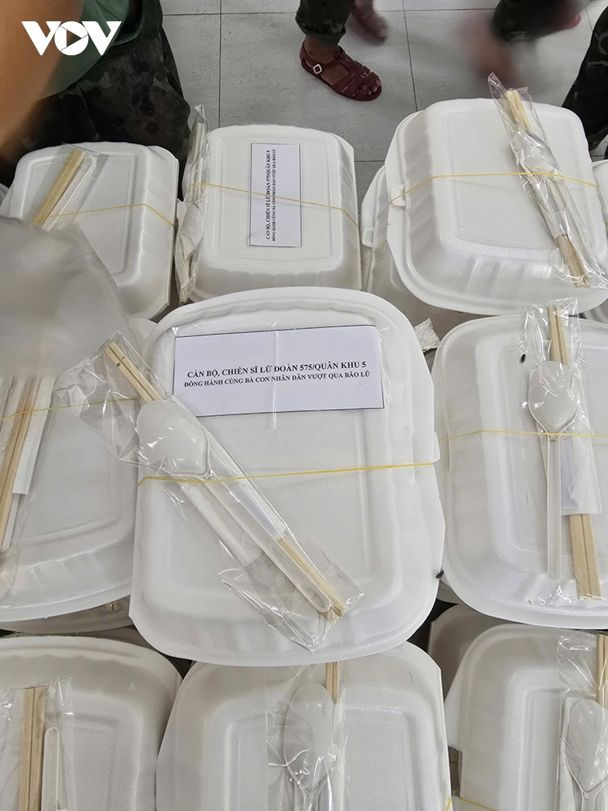 Đã mấy ngày rồi, người dân vùng nước lũ chia cắt, cô lập rất cần sự việc tiếp tế lương thực, thực phẩm. Hôm nay, cán bộ, chiến sĩ Lữ đoàn Thông tin 575, Bộ Tư lệnh Quân khu 5 đã nấu hơn 200 suất cơm mang tới cho bà con vùng lũ. Bộ đội đã cơ động đến tâm lũ xã Hòa Tiến, thành phố Đà Nẵng trực tiếp hỗ trợ bà con đang bị cô lập.