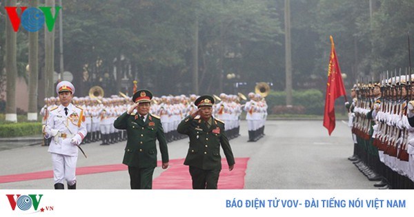VOVVN - VOV.VN - Sáng 20/12, Bộ trưởng Quốc phòng Ngô Xuân Lịch đã chủ trì lễ đón Bộ trưởng Quốc phòng hai nước Lào và Campuchia.