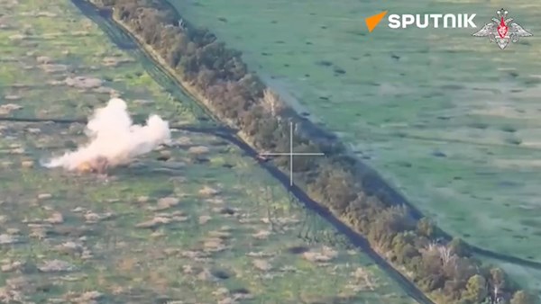 VOVVN - VOV.VN - Bộ Quốc phòng Nga ngày 26/7 công bố đoạn video cho thấy pháo cối tự hành Nona-SVK phá hủy xe bọc thép của Ukraine gần Krasny Liman, Donetsk.