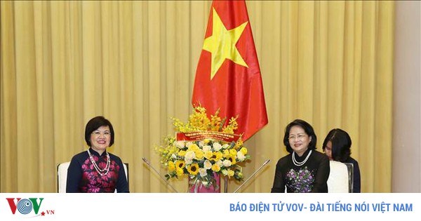 VOVVN - VOV.VN - Chiều 4/3, Nhóm Phụ nữ Cộng đồng ASEAN do Đại sứ Nguyễn Nguyệt Nga dẫn đầu đến chào Phó Chủ tịch nước Đặng Thị Ngọc Thịnh.