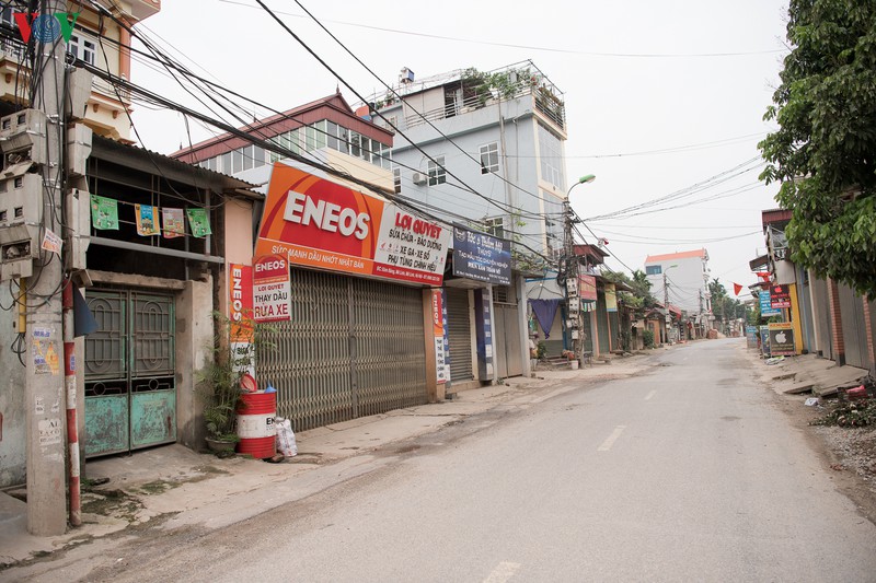Theo ghi nhận của phóng viên VOV.VN trong ngày 9/4, các con đường vào thôn Hạ Lôi đều vắng bóng người.