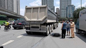 Xe ben va chạm xe máy tại ngã tư Phạm Hùng-Trần Duy Hưng, 1 người bị thương