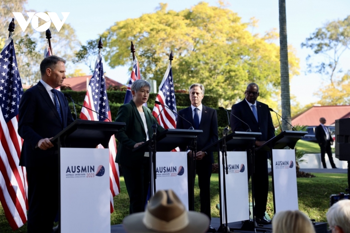 VOV.VN - Hôm nay (29/7), Hội nghị Tham vấn Đối ngoại-Quốc phòng cấp Bộ trưởng (AUSMIN) lần thứ 33 Australia và Mỹ đã diễn ra tại thành phố Brisbane (Australia) nhằm thúc đẩy liên minh Australia-Mỹ tại khu vực; thống nhất các nội dung hợp tác cụ thể trên tất cả các lĩnh vực, trong đó trọng tâm là các lĩnh vực hợp tác quốc phòng-an ninh.