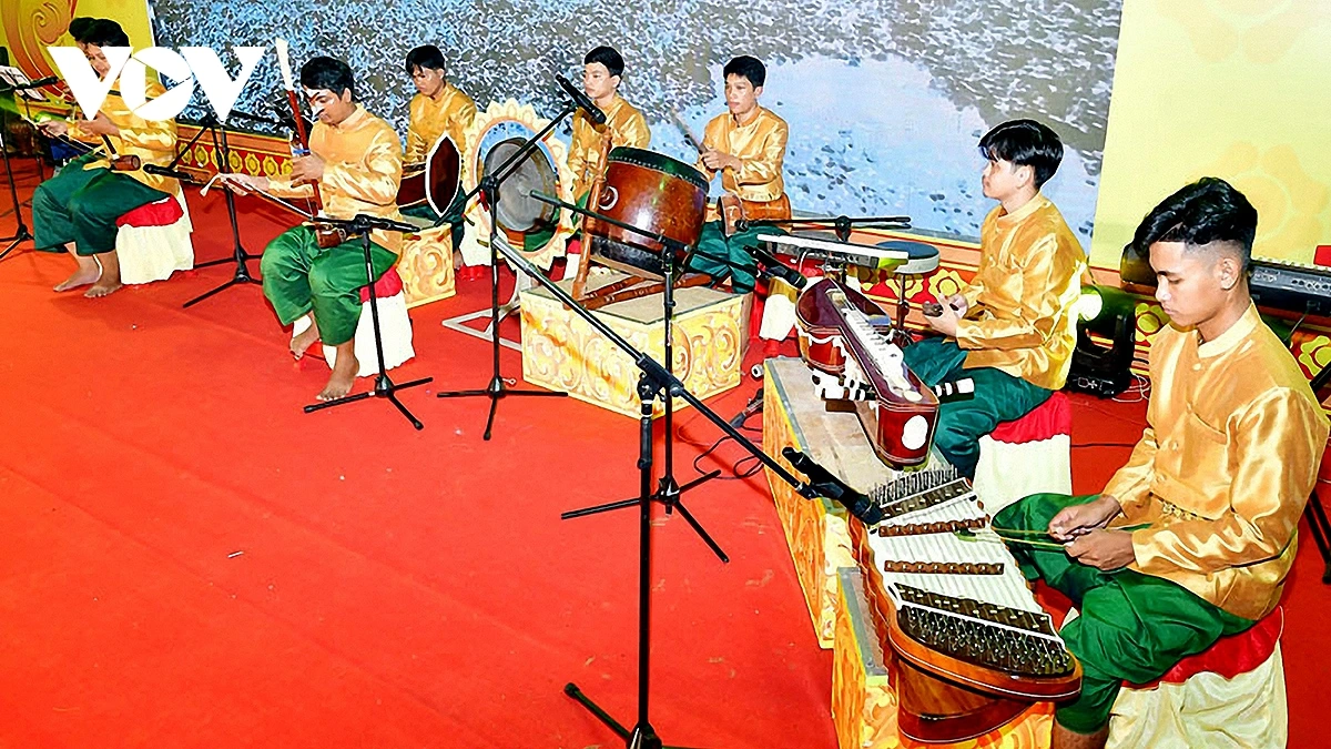 Không khí lễ hội càng thêm rộn ràng hơn với Hội thi trình diễn nhạc cụ truyền thống Khmer, quy tụ hơn 150 nghệ nhân, nhạc công, diễn viên không chuyên. Các tiết mục hòa tấu, độc tấu, song tấu, tam tấu, tứ tấu xoay quanh chủ đề ca ngợi Đảng, Bác Hồ, quê hương, đất nước, phản ánh đời sống văn hóa vùng đồng bào dân tộc.