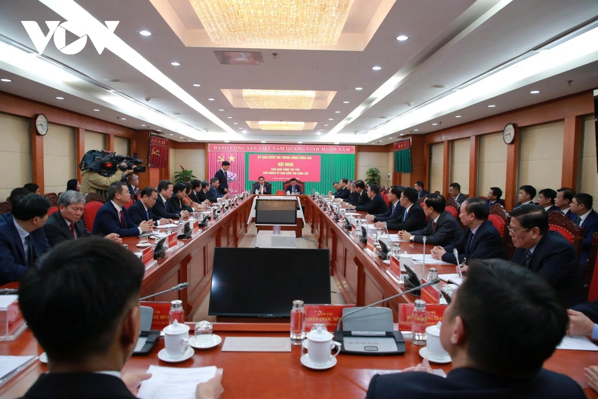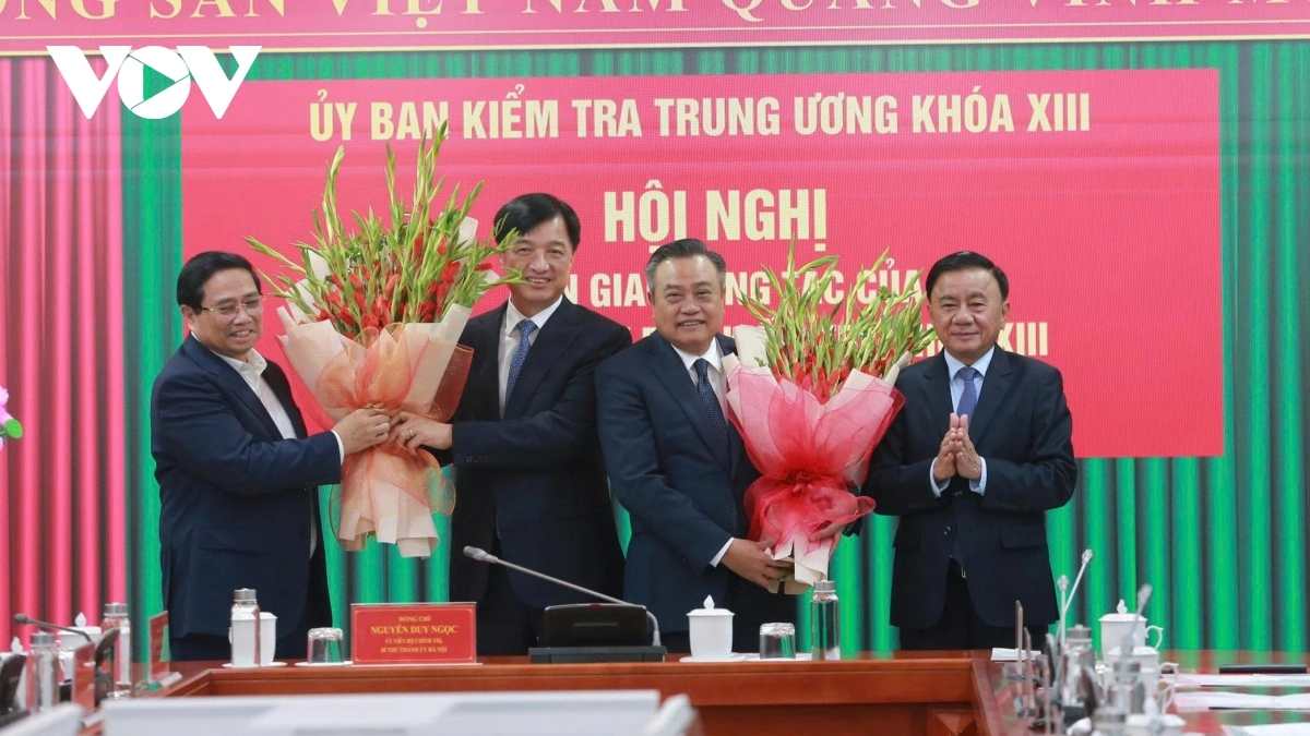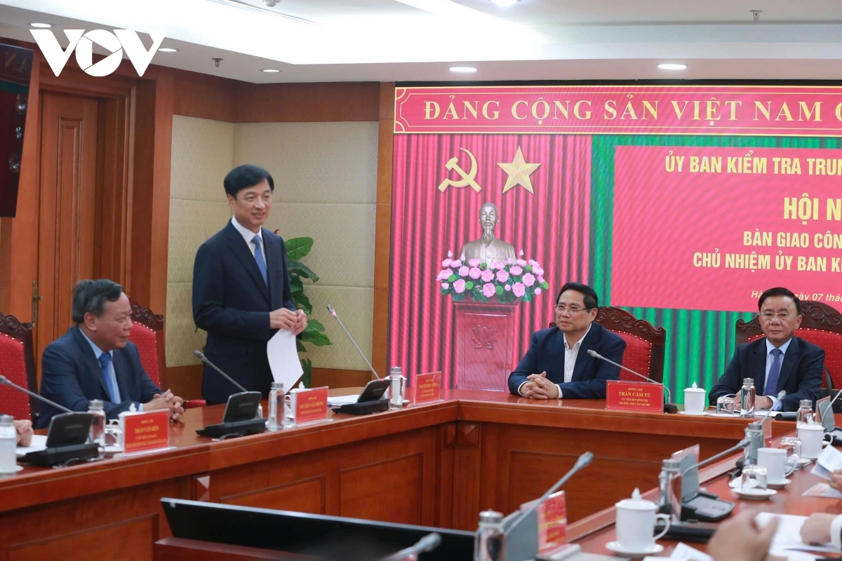 VOV.VN - Chiều 7/11, tại Hà Nội, Ủy ban Kiểm tra Trung ương tổ chức Hội nghị bàn giao công tác của Chủ nhiệm Ủy ban Kiểm tra Trung ương. Tới dự có Thủ tướng Chính phủ Phạm Minh Chính; Ủy viên Bộ Chính trị, Thường trực Ban Bí thư Trần Cẩm Tú.