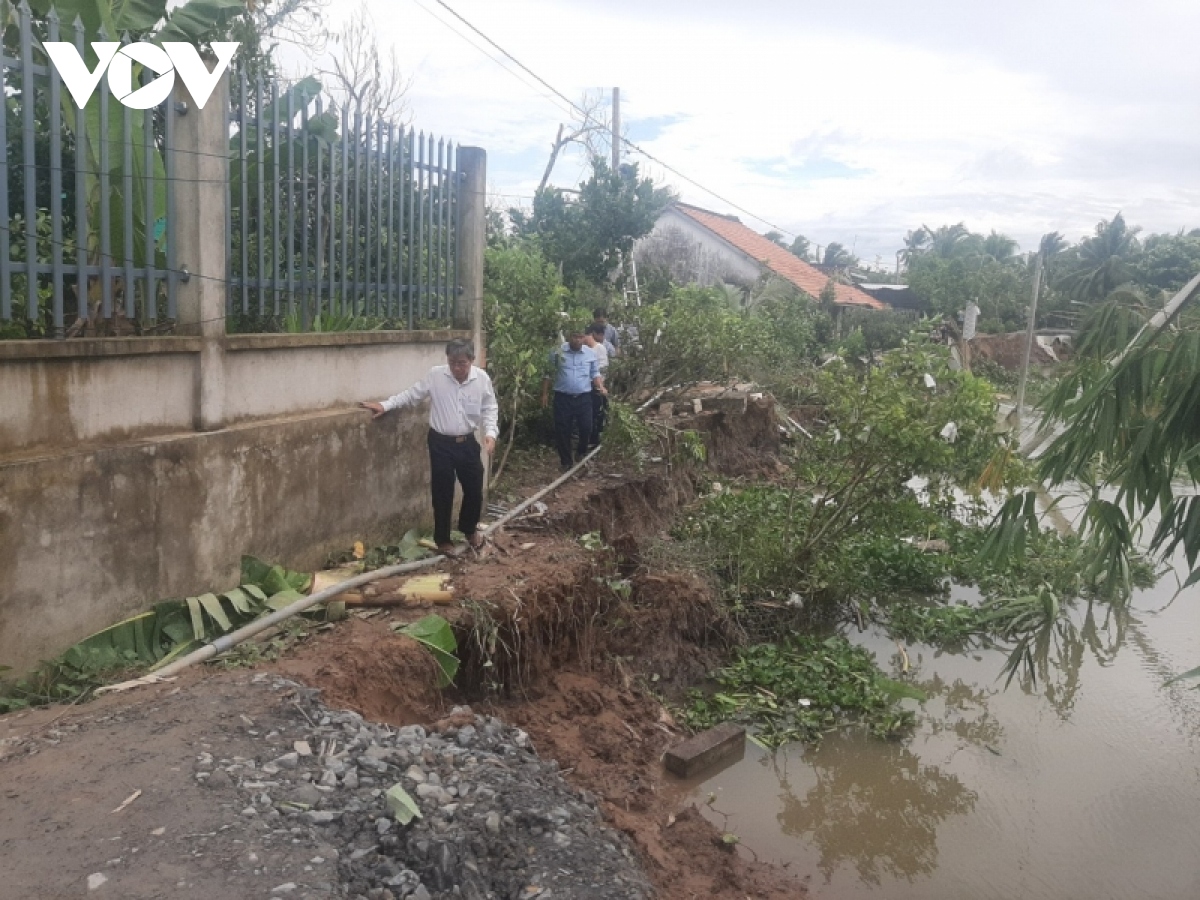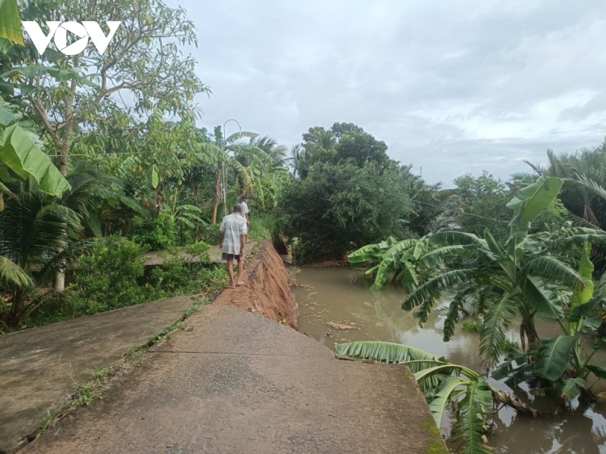 Ông Phạm Văn Thêm có nhà ngay điểm sạt lở cho biết: “Nửa đêm, tôi nghe tiếng động lớn ra xem thì thấy sạt lở, cả hàng rào bị sụp luôn. Bây giờ lở vào sát tường, nhà rồi, sạt lở từ ngoài vào khoảng 6-7 mét. Con đường mới làm xong chưa kịp mừng thì sạt vào đường đi, sạt lở vào tới nhà luôn. Chúng tôi mong muốn cấp trên có thẩm quyền xử lý để người dân yên tâm sinh sống, làm ăn”.