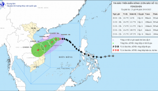 Đến 7h sáng 22/10: Bão di chuyển theo hướng Tây Tây Nam, tốc độ 10-15 km/giờ, vị trí tâm bão ở khoảng 16,8°N - 110,2°E, cách Đà Nẵng khoảng 220 km về phía Đông Đông Bắc. Sức gió mạnh cấp 9, giật cấp 11.