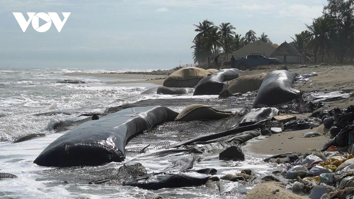 Chính quyền địa phương huy động lực lượng sử dụng bao tải đựng cát kè tạm, bảo vệ bờ biển