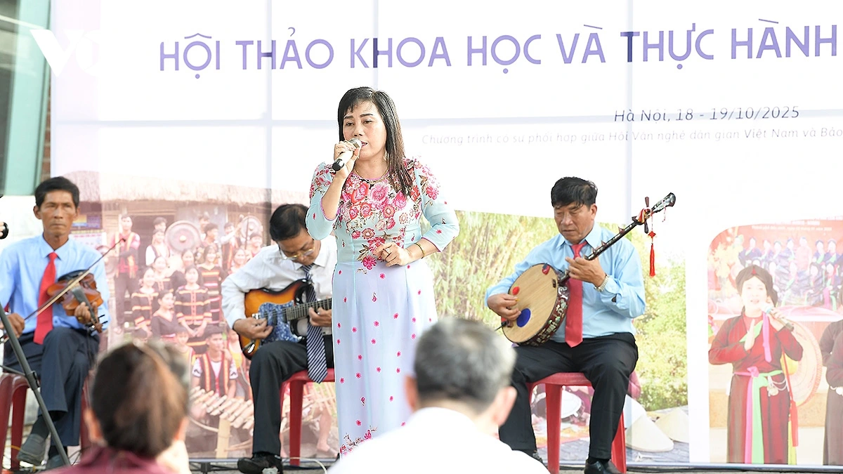 VOV.VN - Ngày 18/10, chương trình Hội thảo khoa học “Những báu vật nhân văn sống với việc bảo tồn văn hóa văn nghệ dân gian các dân tộc Việt Nam” và thực hành diễn xướng dân gian của nghệ nhân dân gian 3 miền đã diễn ra tại bảo tàng Dân tộc học Việt Nam.