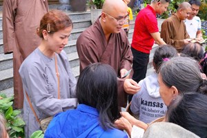 Chùa Liên Hoa (Đồng Tháp) lần 3 đến thăm, tặng quà hỗ trợ đồng bào vùng lũ lụt