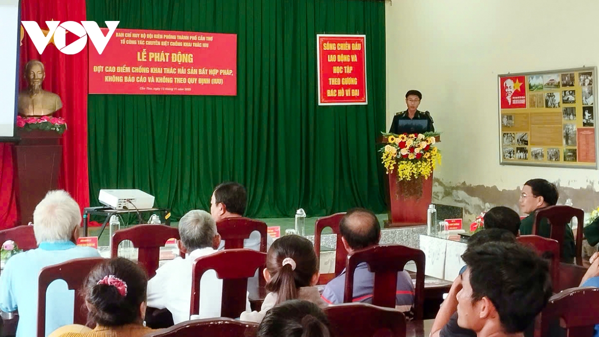 VOV.VN - Trong 2 ngày 13 và 14/11, Ban Chỉ huy Bộ đội Biên phòng TP Cần Thơ tổ chức tuyên truyền phòng, chống khai thác hải sản bất hợp pháp, không báo cáo, không theo quy định (IUU) và các giải pháp phòng ngừa, ngăn chặn tại Đồn Biên phòng An Thạnh Ba và Cảng cá Trần Đề.