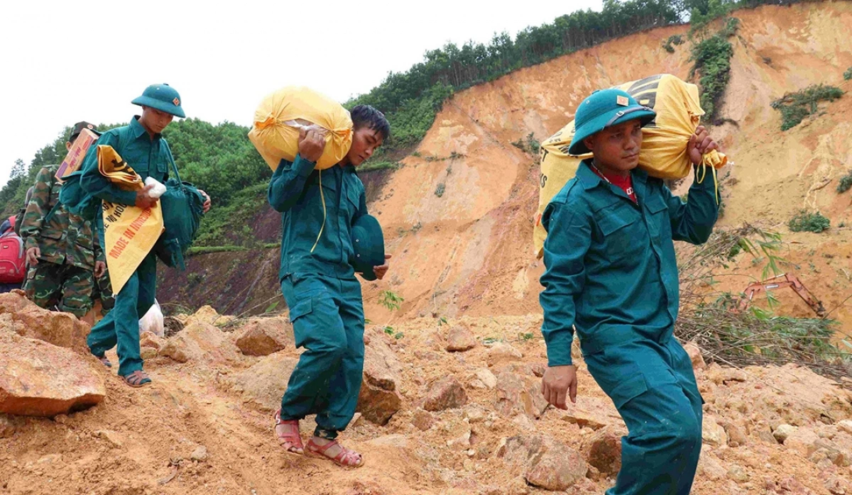 Trước nhu cầu cấp thiết của bà con, ngày 31/10, Ban Chỉ huy phòng thủ khu vực 3 - Trà My phối hợp với Lữ đoàn Công binh 270 tổ chức tiếp tế nhu yếu phẩm. Đơn vị đã gùi cõng, vận chuyển 460 suất quà gồm bánh chưng, bánh mì, nước uống, mì tôm, lương khô, quần áo, thuốc men đến giúp người dân các xã Trà Tân, Trà Đốc.