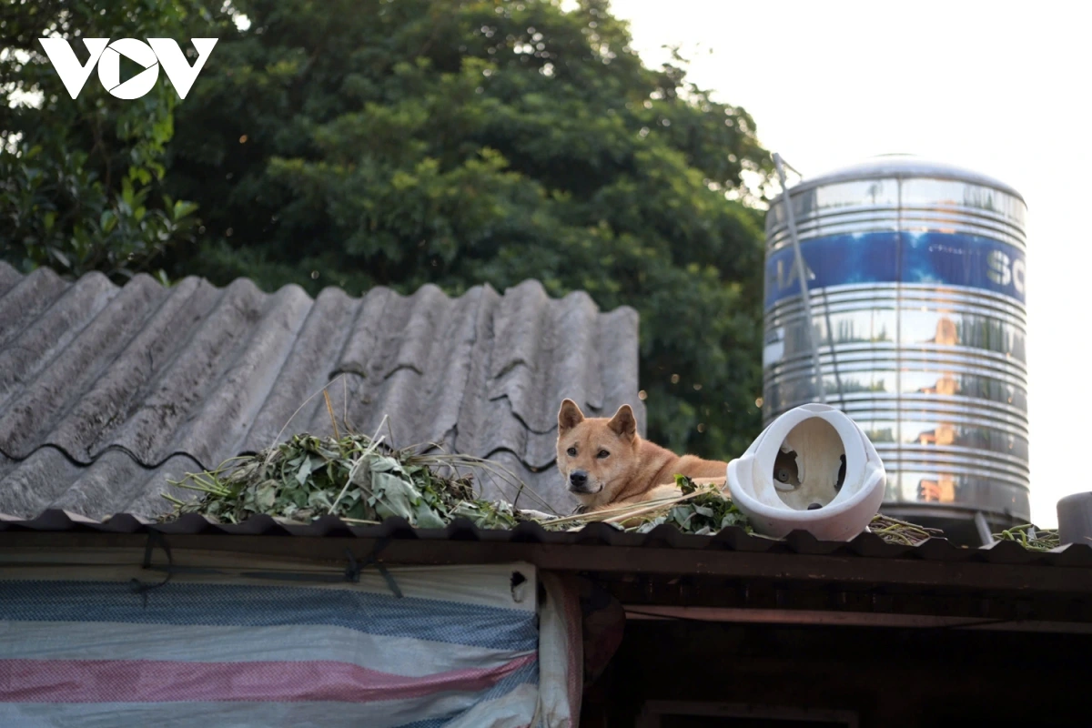 Chú chó này đã ở trên mái nhà cùng ông chủ của nó 4 hôm nay từ khi nước lũ tràn về.