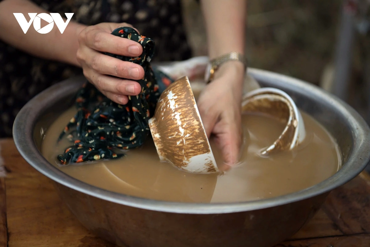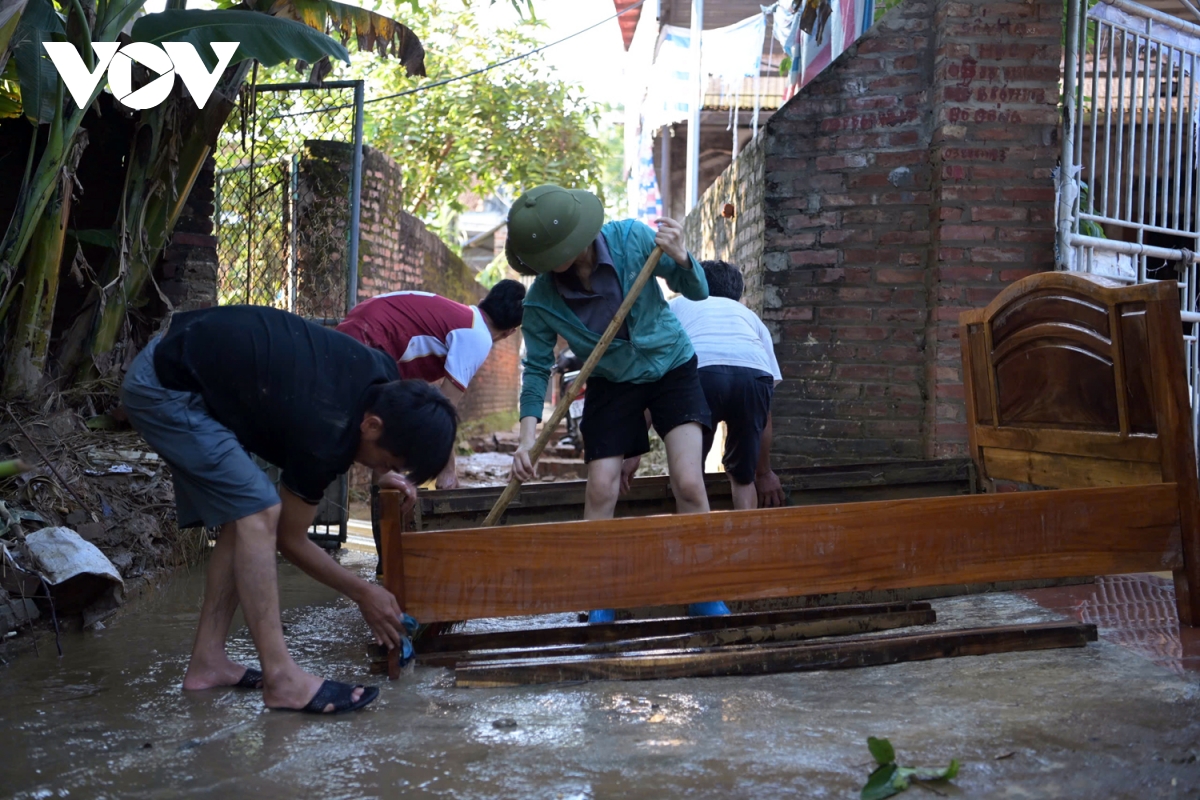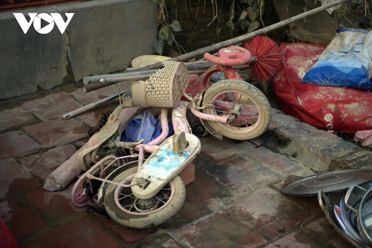 Bão lũ đi qua, bùn đất ở lại. người dân đang cọ rửa những chiếc bát bám đầy bùn đất còn sót lại để chuẩn bị cho bữa cơm sau nước lũ.