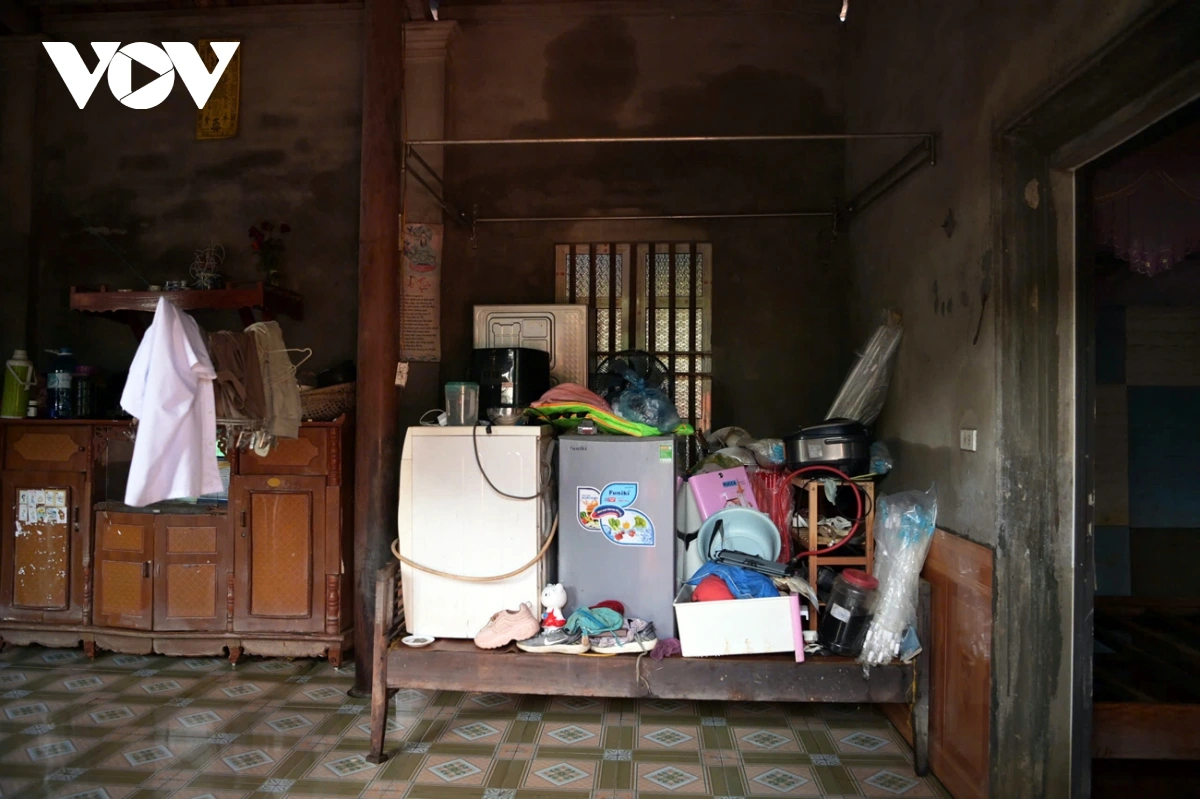 Đồ đạc trong nhà ông Thiêm được ưu tiên đưa lên giường ngủ, nhưng vẫn không thoát khỏi khi mực nước dâng cao kỷ lục gần 2 mét.