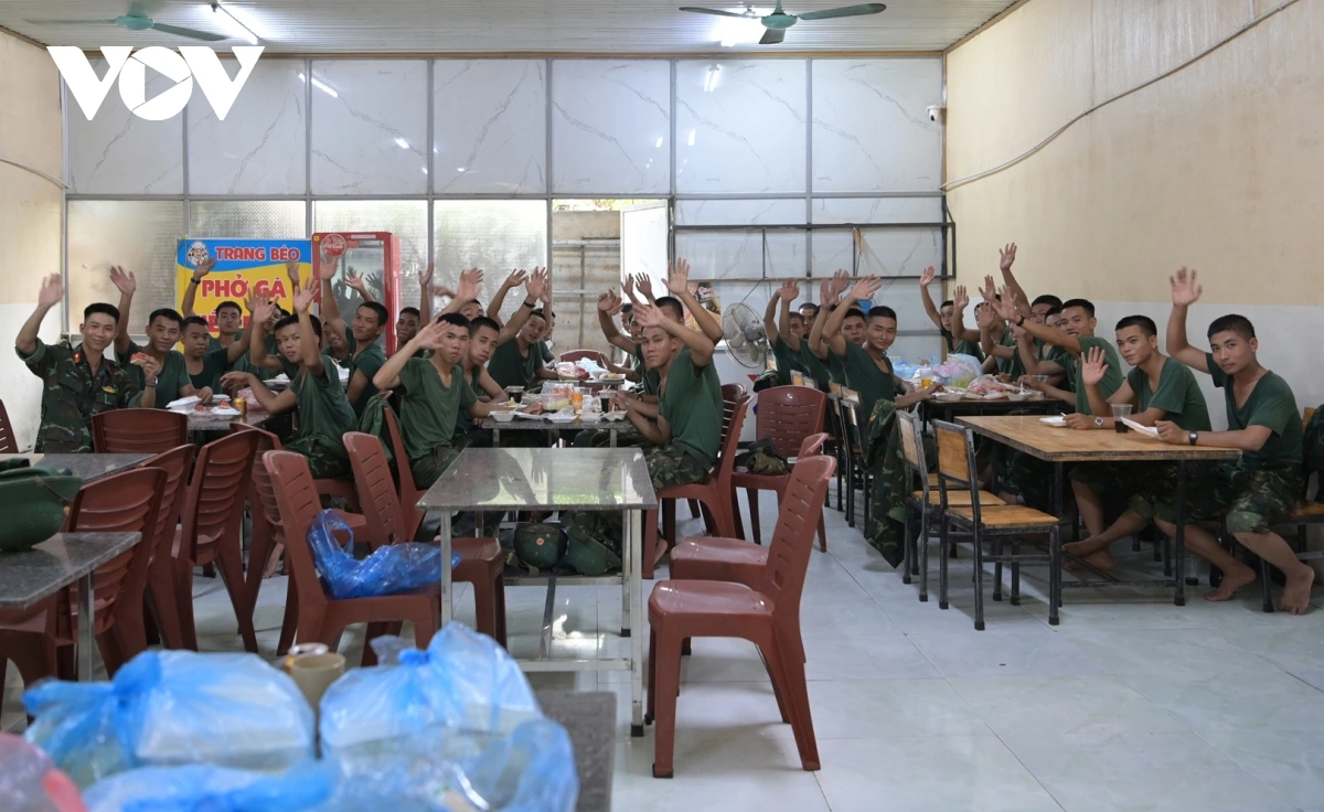 Sau khi dậy từ 4 rưỡi sáng, ăn sáng, tập trung lên xe đến điểm tập kết căng mình cùng đồng đội làm nhiệm vụ thì đến 11h30, các cán bộ, chiến sĩ mới kịp ngồi xuống ăn vội bữa cơm trưa.