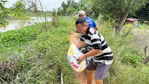 Triều cường và xả lũ đe dọa, hàng chục người đắp đê, ngăn nước ven sông Sài Gòn