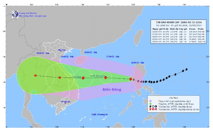 (VOV5) -Sáng 26/9, bão Noru vượt qua khu vực phía Nam của đảo Luzon (Philippines), đi vào Biển Đông, dự báo, chiều tối 27/9 bão vào miền Trung Việt Nam.