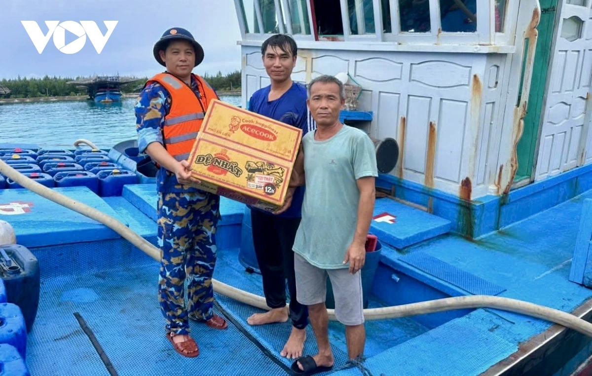 Sau khi vào neo đậu an toàn, các đơn vị đã kịp thời hỗ trợ ngư dân nhiều nhu yếu phẩm như mì tôm, rau xanh, nước ngọt, thuốc men, vật tư y tế và vật tư kỹ thuật trong thời gian tàu cá neo đậu.