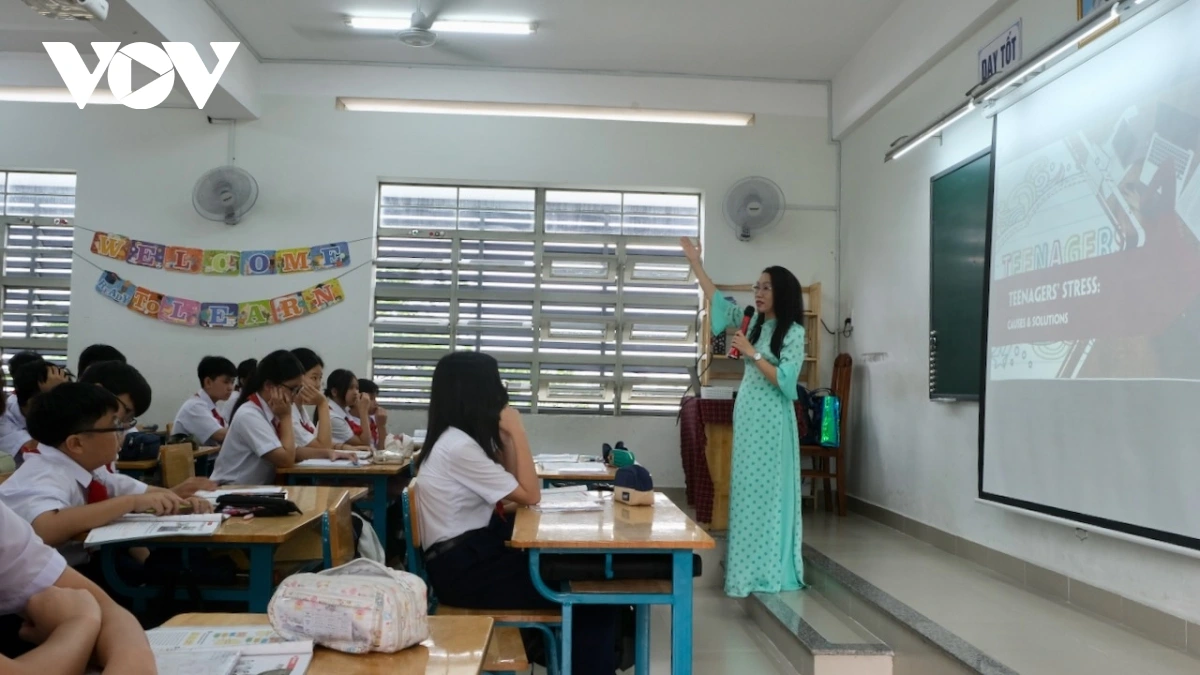 Tiếng cô trò say sưa theo bài giảng vang lên trong tiết học tiếng Anh tại Trường THCS Nguyễn Bỉnh Khiêm (phường Trấn Biên, tỉnh Đồng Nai). Bầu không khí vừa nghiêm túc, vừa sôi nổi. Đối với cô giáo Phan Thị Đỗ Uyên, niềm khích lệ lớn nhất là những ánh mắt hăng say, chăm chú của học sinh.