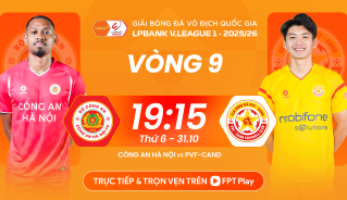 Trực tiếp CAHN vs PVF CAND trong khuôn khổ vòng 9 V-League 2025/2026 diễn ra vào lúc 19h15 hôm nay 31/10.