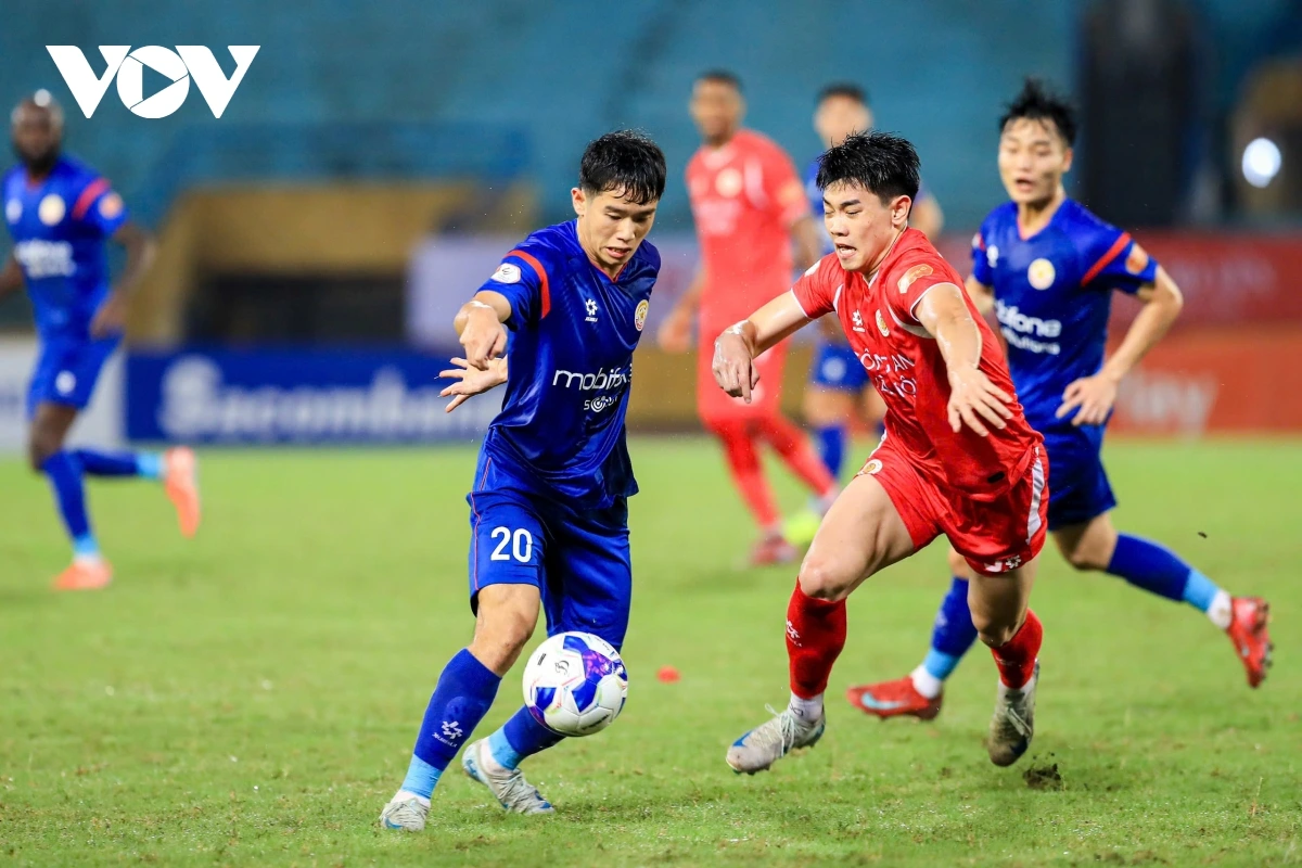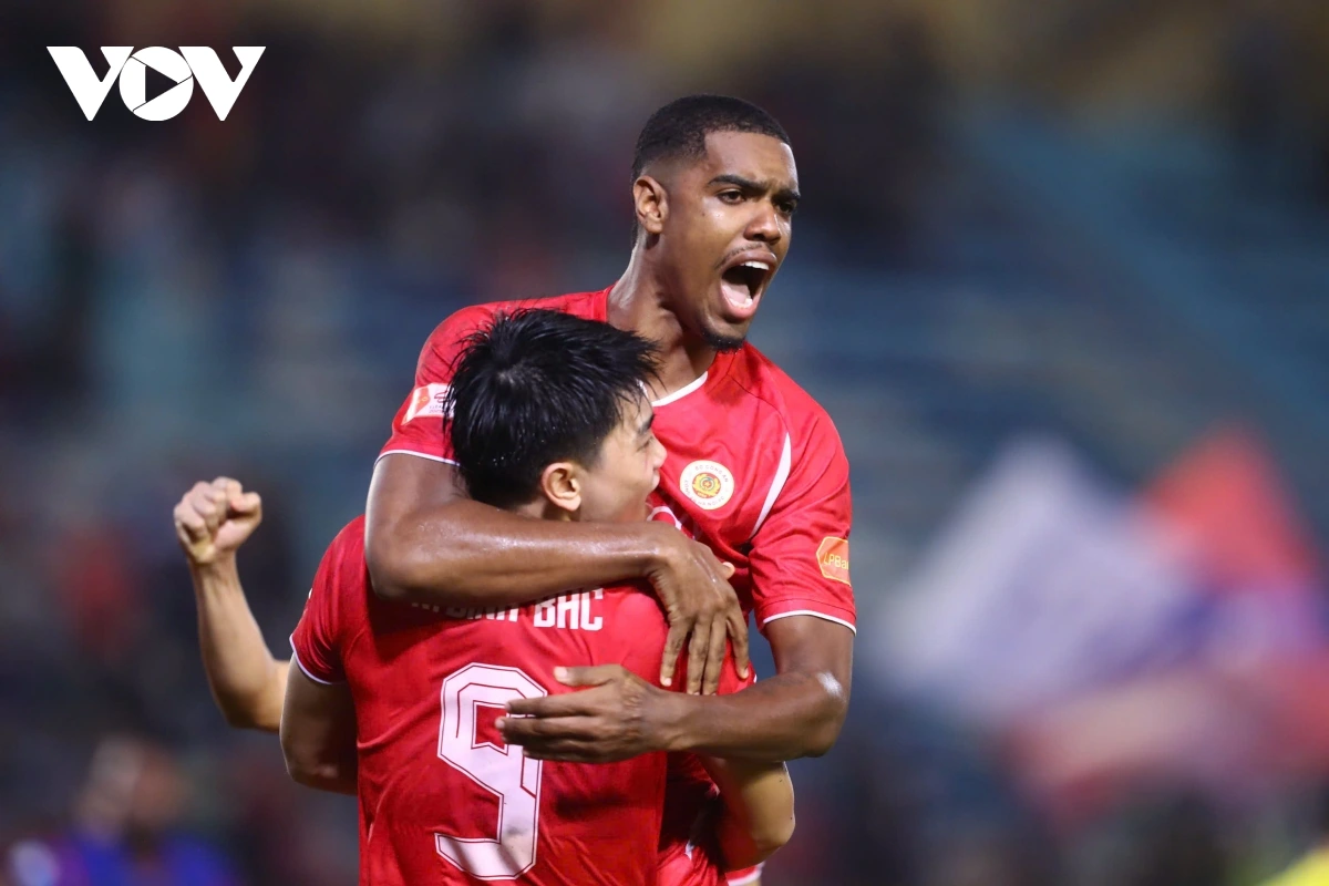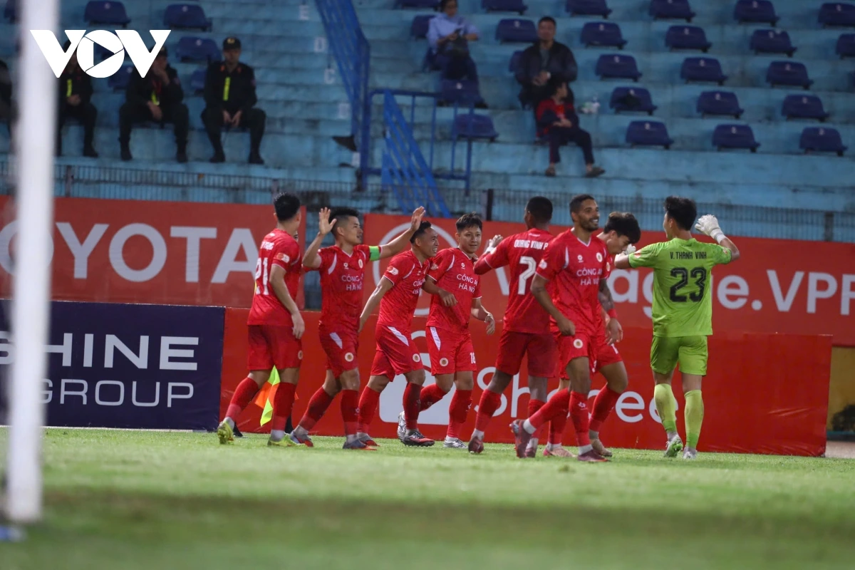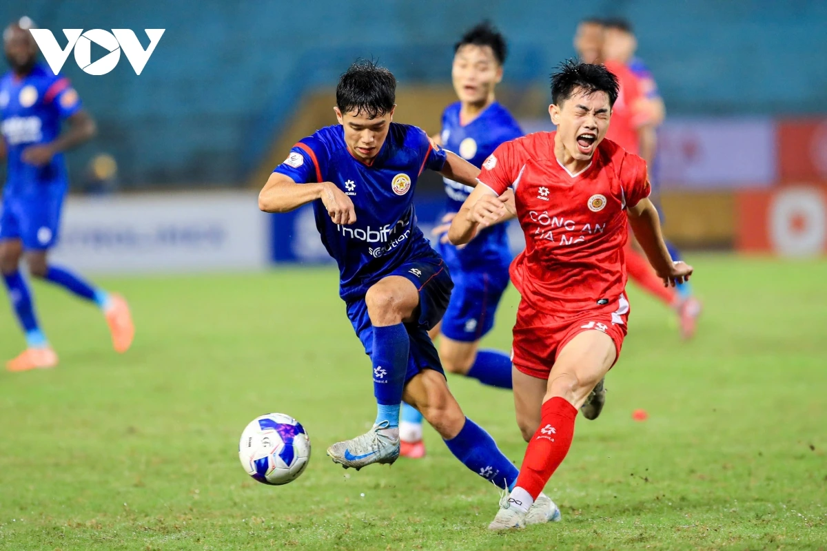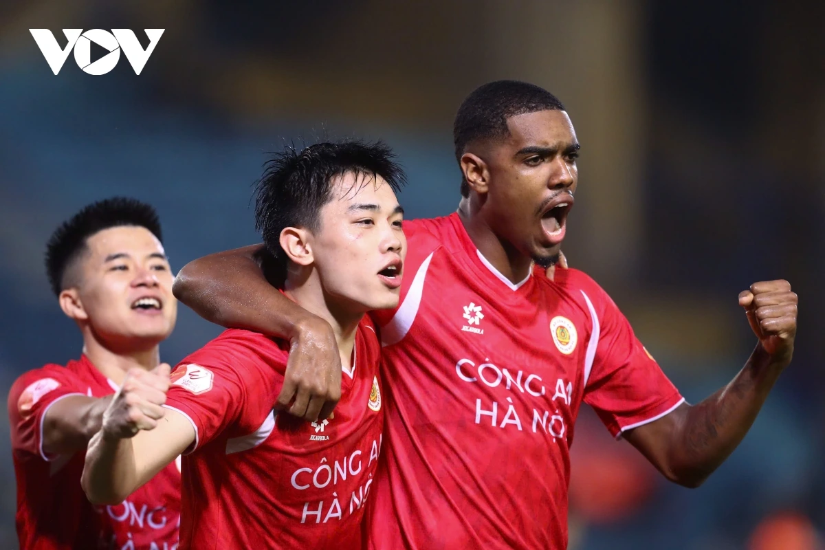 VOV.VN - CAHN giành chiến thắng 2-0 trước PVF CAND ở vòng 9 V-League 2025/2026 qua đó san bằng điểm số với Ninh Bình trong cuộc đua tới ngôi vô địch.