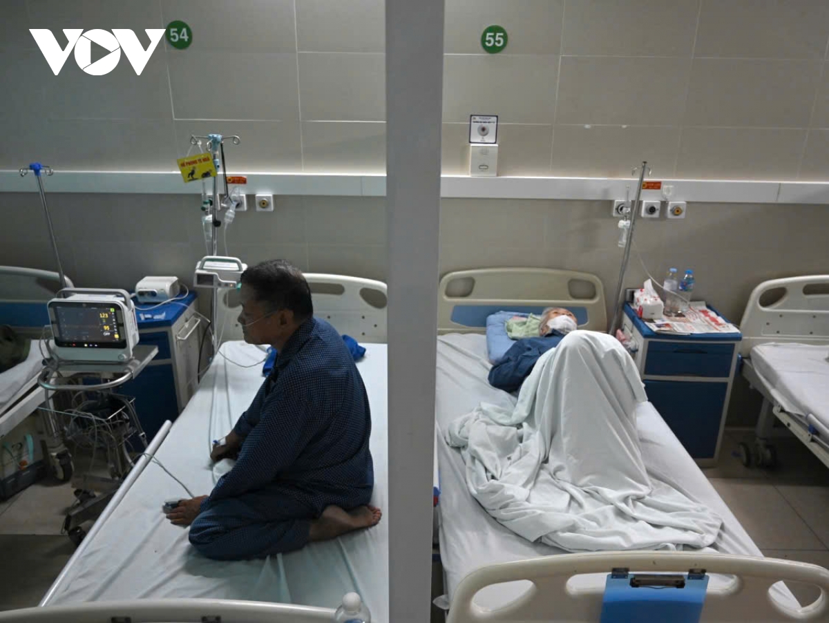 Sau 5 ngày nhập viện, dù đã hết sốt nhưng bệnh nhân Nguyễn Ngọc Thái (73 tuổi, trú tại phường Tân Mai, Hà Nội) vẫn trong tình trạng mệt mỏi, thở dốc và phải thở máy hỗ trợ. Ông Thái là một trong những ca bệnh nặng, nhập viện trong thời gian muộn khi bước sang ngày thứ 3 của cơn sốt, hiện đang được điều trị tích cực tại Khoa Bệnh Nghề nghiệp, Đơn nguyên Truyền nhiễm, Bệnh viện Thanh Nhàn.
