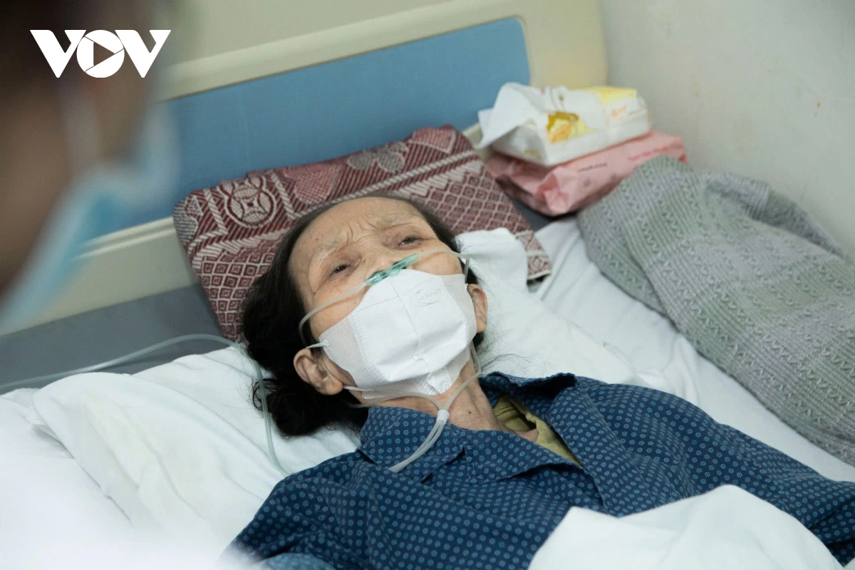 Cũng đang điều trị vì cúm A tại bệnh viện, trường hợp bà Lê Thị Sửu (89 tuổi, trú tại Mai Động, Hà Nội) là một ví dụ điển hình. Con gái của bà, chị Lan Anh (trú tại phố Đại La), cho biết bố mẹ đã lớn tuổi, sống riêng, ông năm nay 94 tuổi, cả hai đều có nhiều bệnh nền. “Mẹ tôi ốm cả tuần mà không biết là bị cúm A, cứ nghĩ chỉ là cúm thường nên tự mua thuốc uống ở nhà nhưng không đỡ. Đến khi bà sốt cao, mệt quá thì mới đưa đi cấp cứu. Khoảng 4 giờ sáng bà bất tỉnh, ông phải gọi điện cho con cháu, đến 5 giờ sáng thì chúng tôi đưa được bà vào bệnh viện”, chị Lan Anh kể lại. (Ảnh: Việt Hà)