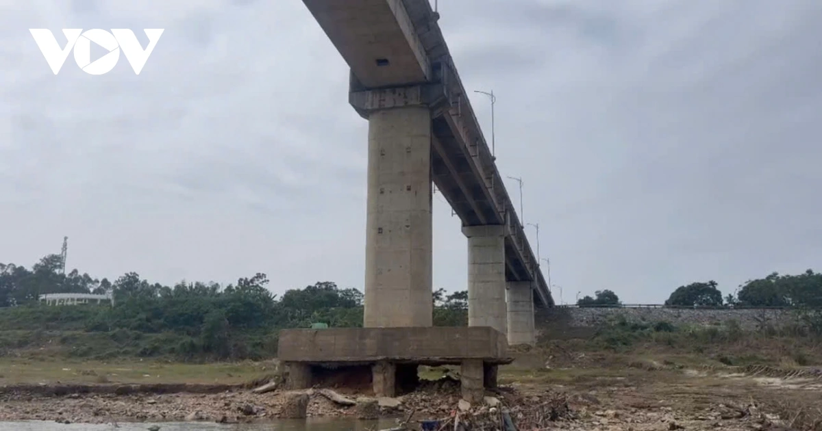 Ghi nhận trong ngày 29/10, mực nước sông qua khu vực cầu sông Lô thấp, lộ rõ hàng loạt móng cọc các trụ cầu. Đặc biệt, tại khu vực trụ T3, phần đất nền bị xói mòn tạo ra một hốc lớn cao khoảng 2m (từ đế móng đến đất nền). Trong đó có một móng cọc lộ ra cốt thép rỉ sét, mất hoàn toàn lớp bê tông bảo vệ.