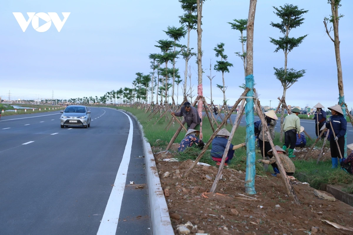 Trên tuyến, hạng mục cây xanh và dải phân cách đang được nhà thầu gấp rút triển khai, góp phần hoàn thiện mỹ quan và an toàn cho toàn tuyến.