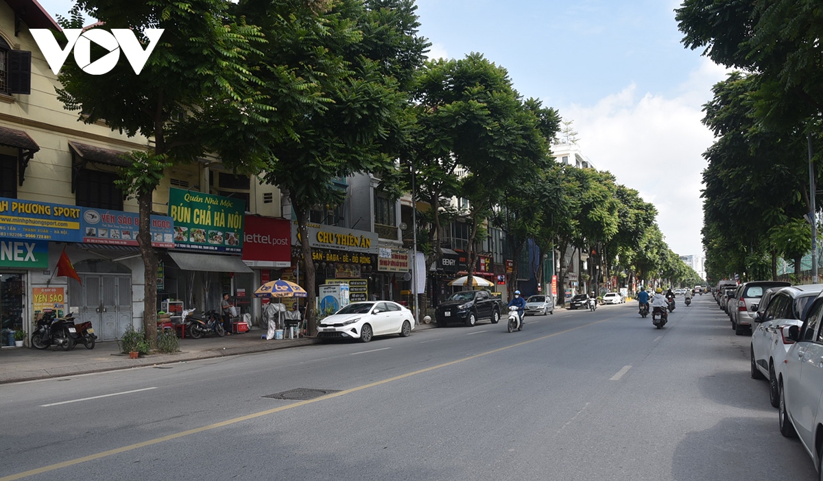 VOV.VN - Tuyến phố Lê Trọng Tấn, phường Khương Mai, quận Thanh Xuân, Hà Nội được xây dựng làm hình mẫu tuyến phố kiểu mẫu văn minh đô thị với quy định biển quảng cáo có kích cỡ, chiều cao, màu sắc "đồng phục" đã không còn được duy trì sau 8 năm hoạt động.