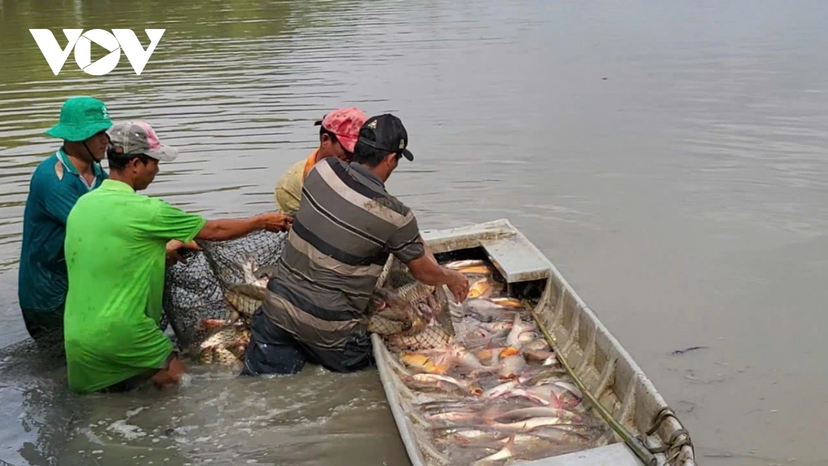 Nông dân Cần Thơ ở vùng trũng đã bỏ lúa Thu đông chuyển sang nuôi cá đồng trên ruộng trong mùa nước nổi