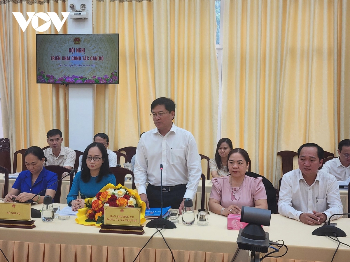 VOV.VN - Sáng nay (25/10), UBND thành phố Cần Thơ tổ chức Hội nghị triển khai công tác cán bộ. Bổ nhiệm ông Nguyễn Trọng Sơn, Bí thư Đảng ủy, Chủ tịch Hội đồng nhân dân xã Trần Đề giữ chức vụ Chánh Văn phòng UBND thành phố Cần Thơ.