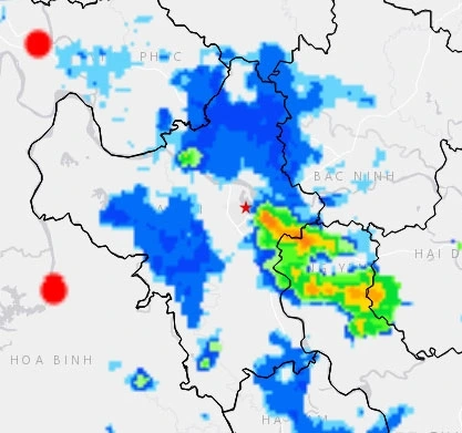 Dự báo trong 3 giờ tới, mưa rào và dông có khả năng xuất hiện tại các phường Phúc Lợi, Long Biên, Hồng Hà, Lĩnh Nam, Vĩnh Hưng, Vĩnh Tuy, Hai Bà Trưng, Hoàn Kiếm, Ba Đình, Cửa Nam, Kim Liên, Bạch Mai, Phương Mai, Phương Liệt… và có thể mở rộng sang nhiều khu vực nội thành khác. Trong cơn mưa, nguy cơ xảy ra lốc, sét và gió giật mạnh.