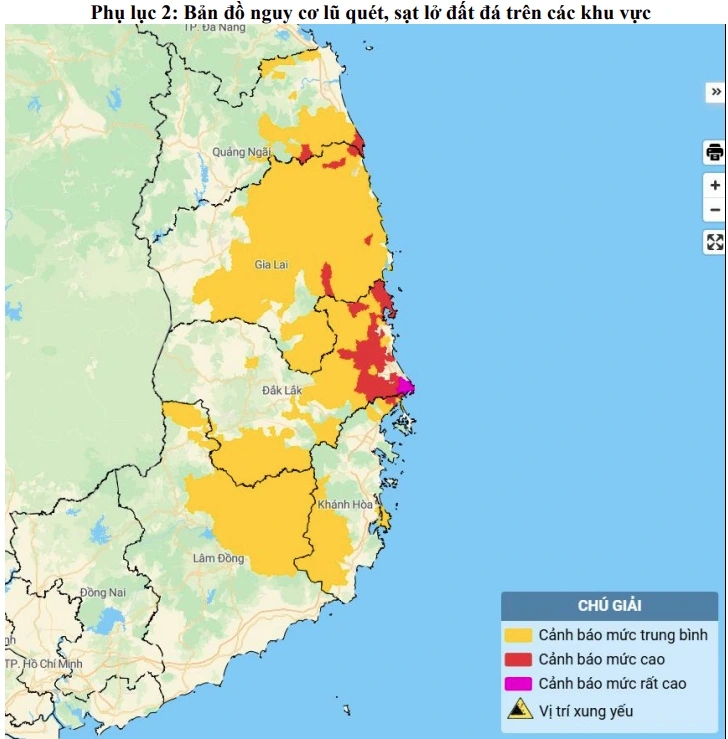 Trong 6 giờ qua (từ 8h đến 14h ngày 6/11), khu vực này có mưa vừa đến mưa to, nhiều nơi mưa rất lớn như Trà Hiệp (Quảng Ngãi) 67,6mm, Phú Lạc (Đắk Lắk) 101,2mm, Suối Sung – Khánh Hòa 82,8mm. Độ ẩm đất ở nhiều nơi đã gần bão hòa (trên 85%) – điều kiện dễ phát sinh sạt lở và lũ quét.