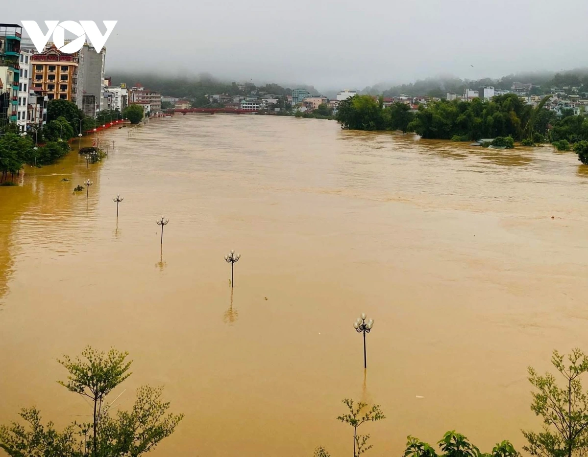 Mưa lớn kéo dài từ đêm 6/10 đến sáng 7/10 trên diện rộng, khiến nhiều khu vực trên địa bàn tỉnh Cao Bằng tiếp tục bị ngập úng và xuất hiện sạt lở tại nhiều địa điểm, giao thông một số tuyến đường bị ách tắc. Mực nước sông Bằng dâng đạt mức báo động 2, nước đang tràn rất nhanh vào các tuyến đường ven sông. Đến 10h sáng, mực nước sông tiếp tục tăng, dòng chảy xiết, cuốn theo nhiều rác thải, cành cây.