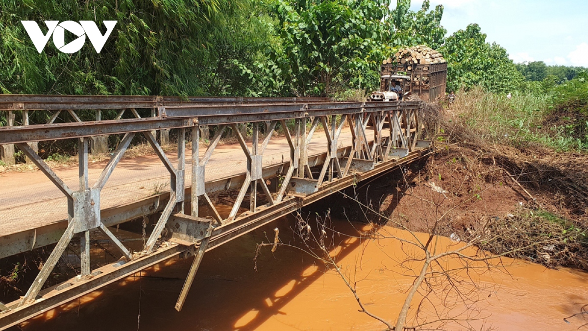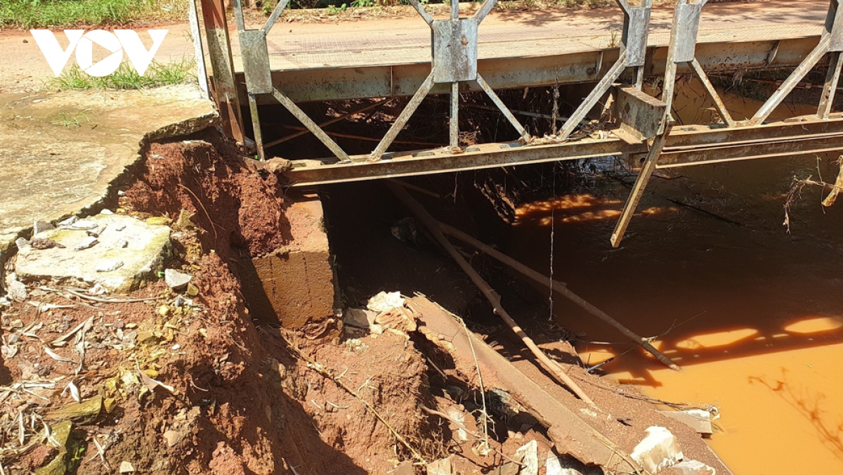 VOV.VN - Từng bị sập vào năm 2008, cầu Suối Nhung ở xã Tân Lợi, huyện Đồng Phú, tỉnh Bình Phước hiện lại bị sạt lở nghiêm trọng. Hàng trăm hộ dân thường xuyên qua lại cây cầu này nơm nớp lo sợ và mong muốn được sửa chữa để đảm bảo an toàn tính mạng, cũng như lưu thông.