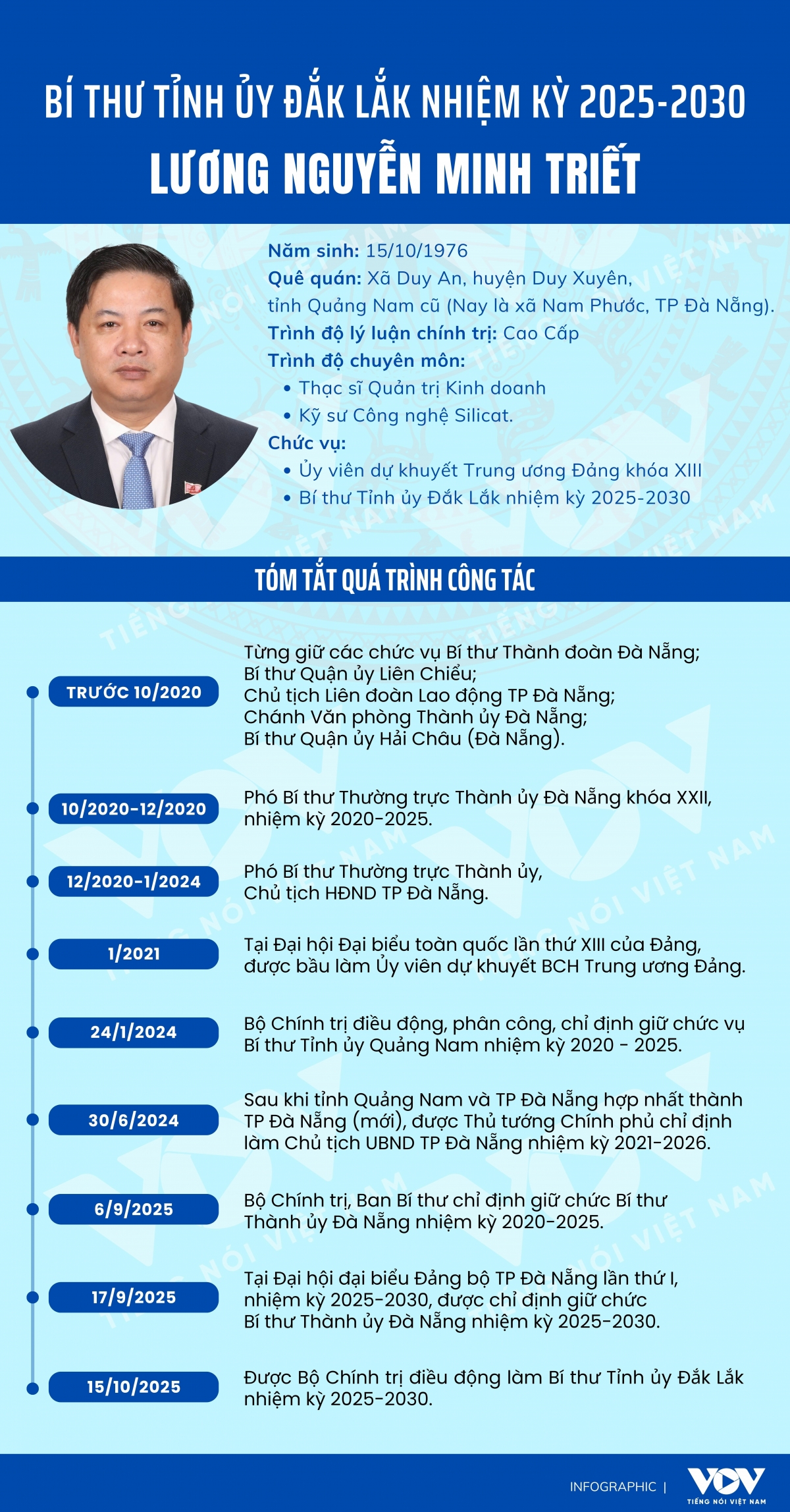 VOV.VN - Ngày 16/10, tại Đắk Lắk, Bộ Chính trị đã công bố quyết định điều động, phân công ông Lương Nguyễn Minh Triết giữ chức Bí thư Tỉnh ủy Đắk Lắk, nhiệm kỳ 2025-2030.